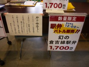 シンポジウム会場では、一日だけの限定販売となる幻の倉吉線弁当と南勝線弁当の駅弁販売バトルを実施。