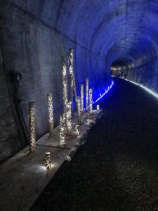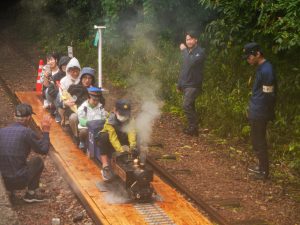 今年で3回目となる廃線跡まつり。案内所~旧泰久寺駅~山守トンネルの往復の経路を、ミニSL乗車・トンネルライトアップ・鉄道関連品の展示を楽しみながら散策。そのた、ガラポン抽選会や美味しいもの屋台などなど。