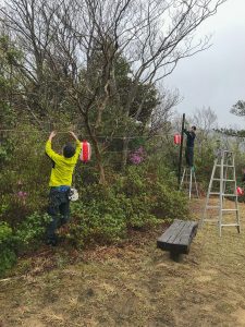 4/13~5/17の期間、養生の郷のメンバーと地元有志が協力して、関金の春の風物詩、シロヤマ亀井公園の提灯を、登り口から山頂展望台までの遊歩道に掲出しました。